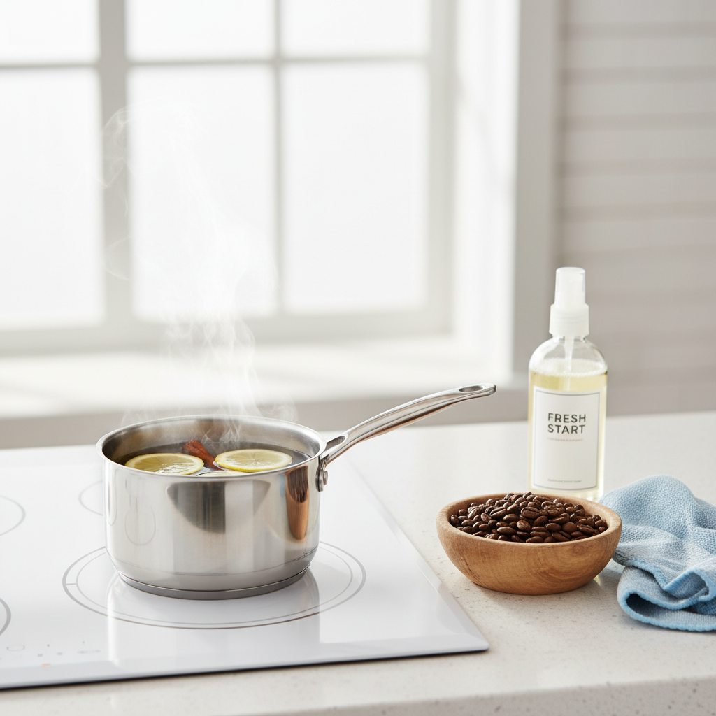Een simpele methode is om de schillen van een paar citroenen, limoenen of sinaasappels in een pannetje met water te doen en dit zachtjes te laten sudderen. Dit werkt op dezelfde manier als de azijnmethode, maar laat een heerlijk verkwikkende geur achter.